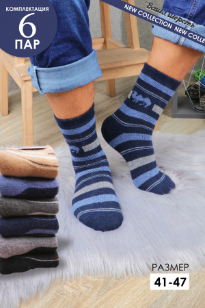 В упаковке 6 пар разных цветов, множество вариантов расцветок с рисунком полоска - могут отличаться от представленных на сайте. Размер: 41-47