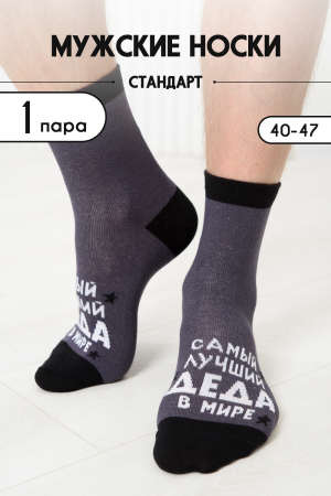 Мужские носки, комплект 1 пара. Мысок и пятка носка выполнены из другого цвета. На верхней части носка надпись Лучший деда в мире