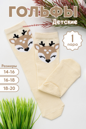 Детские гольфы для девочек с изображением маленького олененка. Отлично подойдут для прогулки и в детский садик. В комплекте 1 пара. с