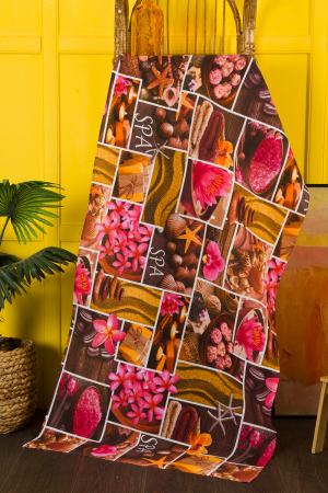 Большое банное полотенце с красивым рисунком размером 150*80 подойдет для ванной, бани, сауны и пляжа. Полотенце не линяет и не садится даже после многочисленных стирок. Изделие отлично впитывает влагу и благодаря большому размеру очень удобно в использовании.