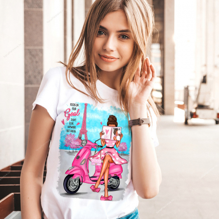 Наши футболки защищены от копий, розовым, слегка заметным кристаллом Swarovski на логотипе.