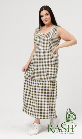 Сарафан "Женева" оливка (мелкая клетка) (арт. 1918327649)
