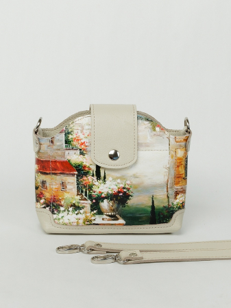 Стильная сумка MILLA принт. Изготовлена из натуральной кожи, сумка закрывается на молнию и фиксируется кнопкой. Внутри имеется карман. Наружный кармин закрывается на молнию Разнообразие цветов кожи и принтов, позволяют носить сумку с любой одеждой. В комплекте прилагается элегантный плечевой ремешок , который надежно крепится к чехлу карабинами, длина ремешка 120 см. Размер: 16 * 6 * 20 см.