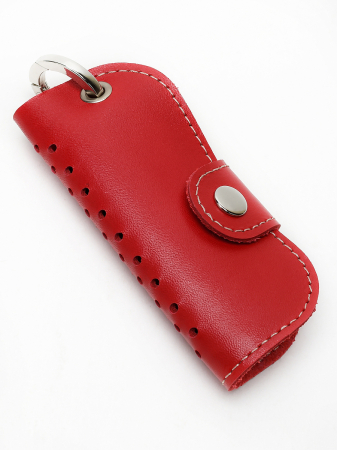 Ключница KLEO сделана из натуральной кожи, прострочена по периметру, что не дает деформироваться краю кожи. Укомплектована кольцом-карабином а так же тремя спиральными кольцами для крепления ключей.Закрывается на кнопку.Размер 12*6 в развернутом виде 12*15