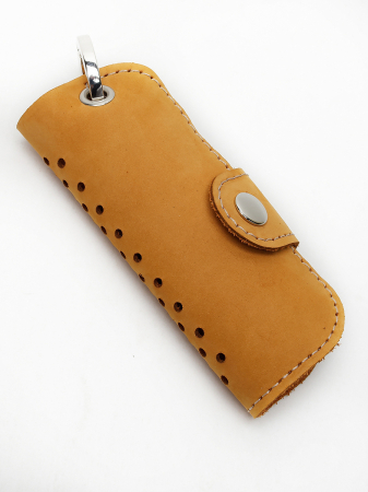 Ключница KLEO сделана из натуральной кожи, прострочена по периметру, что не дает деформироваться краю кожи. Укомплектована кольцом-карабином а так же тремя спиральными кольцами для крепления ключей.Закрывается на кнопку.Размер 12*6 в развернутом виде 12*15