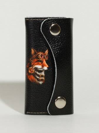 Ключница Filch принт сделана из натуральной кожи, прострочена по периметру, что не дает деформироваться краю кожи. Укомплектована шестью карабинами для крепления ключей.Закрывается на две кнопки.Размер 12*6 в развернутом виде 12*15