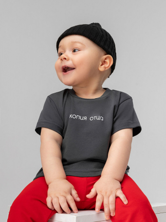 Футболка для детей ясельного возраста. Футболка прямого силуэта, с втачными коротким рукавами. Горловина округлой формы. На полочке располагается принт.