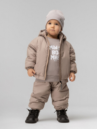 Костюм для детей ясельного возраста. Куртка утеплённая на подкладке, свободного силуэта, с центральной застёжкой на молнию. Куртка со спущенным плечом и втачными рукавами с притачной манжетой. Капюшон со стойкой. На полочке расположены карманы. Брюки утеплённые для детей ясельного возраста. Брюки свободные, по низу резинка, на притачном поясе. Куртка на поясе.Материал верха: курточная ткань 100% полиэстер, утеплитель куртка 150 г/кв.м, брюки 100 г/кв.м, подкладочный материал 100% хлопок. Температурный режим от 0 до +10, в зависимости от индивидуального теплообмена ребенка.