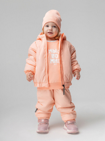 Костюм для детей ясельного возраста. Куртка утеплённая на подкладке, свободного силуэта, с центральной застёжкой на молнию. Куртка со спущенным плечом и втачными рукавами с притачной манжетой. Капюшон со стойкой. На полочке расположены карманы. Брюки утеплённые для детей ясельного возраста. Брюки свободные, по низу резинка, на притачном поясе. Куртка на поясе.Материал верха: курточная ткань 100% полиэстер, утеплитель куртка 150 г/кв.м, брюки 100 г/кв.м, подкладочный материал 100% хлопок. Температурный режим от 0 до +10, в зависимости от индивидуального теплообмена ребенка.