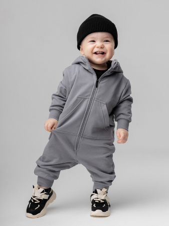Комбинезон для детей ясельного возраста. Комбинезон без подкладки, прямого силуэта, с застёжкой на молнию, с притачными манжетами по низу изделия. Комбинезон с втачными рукавами с притачной манжетой. Комбинезон с капюшоном, с карманом «кенгуру».