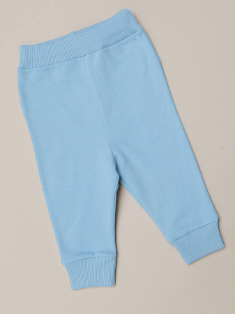 Штанишки для мальчика голубые из интерлока в голубой расцветке. Штаны для малышей имеют удобную эластичную манжету в нижней части брючин. Мягкий и комфортный пояс на резинке.