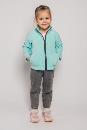 Джемпер детский из флиса с втачными рукавами. Воротник стойка. Застежка центральная на молнию. Карманы фигурные, накладные.