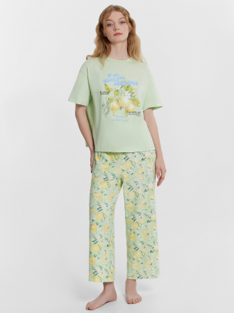 Бриджи свободные. Пояс цельнокроеный с втачной эластичной тесьмой 40RV, отстрочен. На поясе пришивная бейка, завязывающаяся в бант из основного полотна. Низ бридж обработан швом в подгибку.