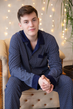 Мужская пижама из 100% хлопка, приятная к телу и не сковывает движений. В комплекте рубашка на пуговицах и с удобными карманами, так же прямые свободные брюки на поясной резинке. Отличный комплект, выполнен со вкусом, подойдёт каждому мужчине.