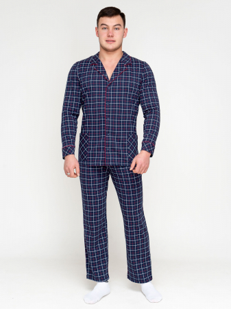 Мужская пижама с кантом состоит из рубашки и брюк.