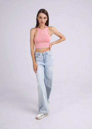 Женская майка-топ из микрофибры с эффектом "Варки". Майка плотного прилегания, по низу вывязана широкая резинка