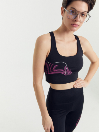 Топ женский изготовлен из трикотажного полотна интерлок. Топ облегающего силуэта на широких бретелях. Вырез горловины округлый.