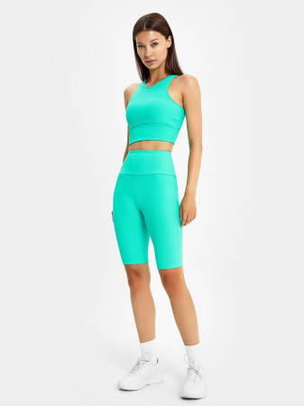 Стильный комплект из трикотажного интерлока. Состоит из топа и шортов. Топ облегающего силуэта, с округлым вырезом горловины и «американской» проймой. Подкладка из сетки и чашки-вкладыши добавляют комфорта. Нижняя часть топа окантована широким поясом. Шорты облегающего силуэта, с высокой линией талии, широким поясом с эластичной тесьмой внутри. Рекомендуем!