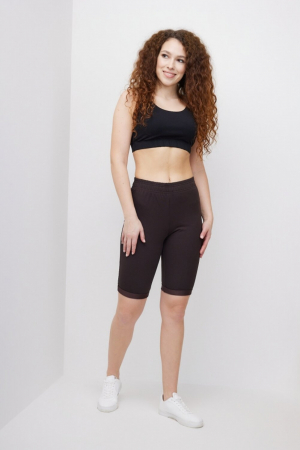 Спортивные женские бриджи, именуемые иначе велосипедками, выполненные из эластичного хлопкового трикотажа, очень хорошо облегают фигуру и прекрасно выполняют свое непосредственное предназначение – быть комфортными для выполнения физических нагрузок и упражнений. Красивая окантовка нижнего среза придают особый шик, так что в сочетании с кедами и майкой-борцовкой, а прохладный день с толстовкой, высокими носками и кроссовками такие велосипедки создают шикарный спортивный лук.
