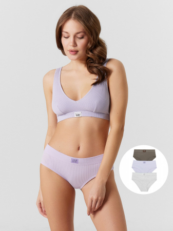Трусы женские, средняя линия талии, силуэт - слипы. Передняя и задняя детали выполнены из рибаны. Верхний срез трусов обработан бейкой поперечной из рибаны, внутри жилка 6мм. Нижние срезы обработаны бейками поперечными из рибаны. Подкладка ластовицы из хлопка, отлетная по верхнему срезу.
