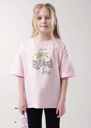 Оверсайз футболка для подростка из 100% хлопка. Горловина оформлена эластичной обтачкой из кашкорсе. Спереди актуальный принт.