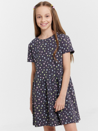 Повседневное хлопковое платье для девочек. Модель акцентирует внимание на талии. Рукава короткие, вырез круглый, не глубокий. Длина платья выше колена. Стильно!