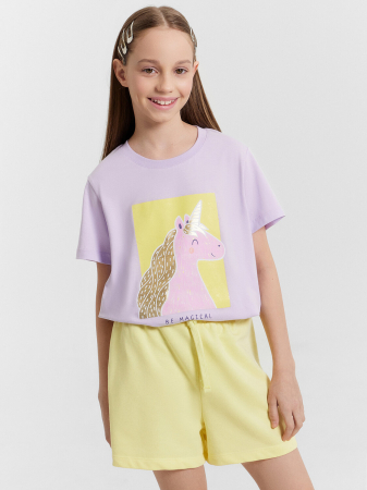Свободные шорты для девочек, выполненные из трикотажного футера. Пояс с эластичной тесьмой внутри и регулировочным шнурком-завязкой. Рекомендуем!