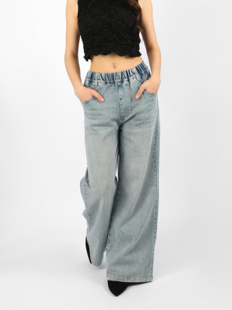 Джинсы-трубы Соль&Перец. Трендовая модель из эластичного денима, на широкой резинке, без молнии и пуговиц. Передние карманы зашитые, при необходимости можно распороть. Ремень в комплект не входит.