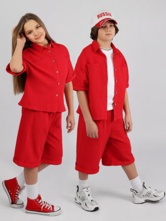 Летний детский костюм Соль&Перец, выполнен из натурального хлопкового вафельного трикотажа. Рубашка свободного кроя с потайными карманами на груди, удлинённые шорты с карманами, по талии на широкой, эластичной резинке. Костюм из хлопковой ткани вафельной текстуры хорошо пропускает воздух, защищает от солнца и подходит для чувствительной кожи. Отличный вариант для летнего отдыха.