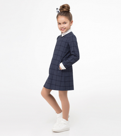Стильное модное платье для девочки из поливискозной ткани с рисунком в клетку. Передняя часть платья на вискозной подкладки. Платье для девочки полуприлегающего силуэта, с длинным втачным рукавом, со съемным воротничком и манжетами, с застежкой на потайную молнию по спинке. По переду платья имеются боковые карманы. Спинка со средним швом. Воротничок и манжеты съемные на потайных петлях и пуговицах, что обеспечивает практичность. Отличный вариант дресс кода.Размер 30-122: Длина изделия - 62см, Длина рукава - 42.5см, Обхват шеи - 32.5см, Ширина плеча - 8см, Ширина по бедрам - 38см, Ширина по груди - 34см, Ширина рукава - 13см;