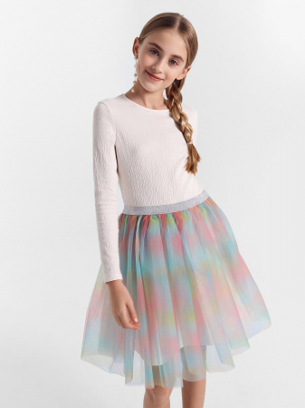 Праздничное платье для девочек - это воплощение изящества и элегантности. Модель длиной выше колена и круглой горловиной, создаёт классический и утончённый образ. Длинные рукава добавляют наряду дополнительной изысканности. Юбка платья выполнена в три слоя: два верхних слоя из нежного фатина придают легкость и воздушность, а подкладка из кулирной глади обеспечивает комфорт и уют при носке. Пояс из жаккардовой тесьмы добавляет утонченный акцент, подчеркивая талию. Это нарядное платье станет прекрасным выбором для любых праздников и торжественных мероприятий, позволяя каждой девочке почувствовать себя настоящей принцессой. Рекомендуем!