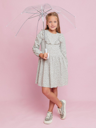 Платье с длинным рукавом для девочки трикотажное из супрема. Красивое летнее платье с оборками в верхней части и леопардовым принтом. Мягкий эластичный трикотаж из смесового хлопка.