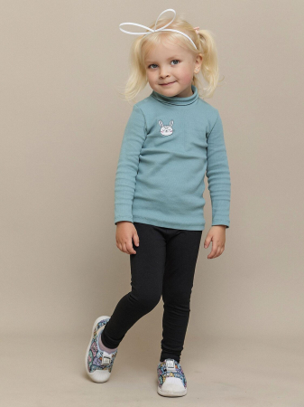 Водолазка (джемпер) для девочки в мятном цвете с длинным рукавом. На груди нашивка с зайчиком. Модель прямого кроя можно носить как самостоятельно, так и с кофтами и джемперами.