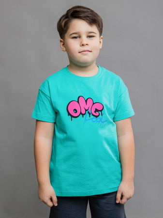 Футболка для мальчика зеленая с коротким рукавом из супрема. Прямой крой, круглый вырез горловины, декор в виде яркой надписи в стиле граффити. Высокое содержание хлопка 92%, материал дышащий. Стильная базовая футболка на каждый день.