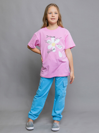 Футболка для девочки розовая с коротким рукавом и принтом в виде цветка. Благодаря идеальному крою и эластичности ткани футболка отлично ощущается на теле. Прочный трикотаж обеспечивает особую износостойкость, поэтому модель будет радовать вас не один сезон.