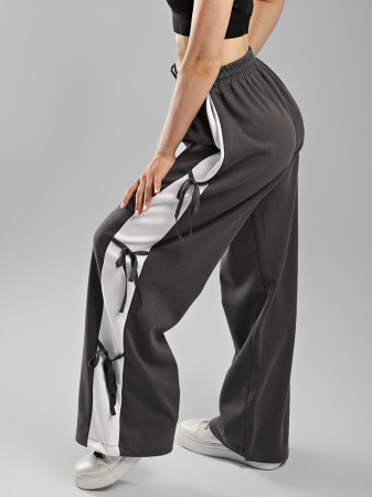 Брюки палаццо женские Соль&Перец в стиле спорт-шик, с лентами по бокам. По талии брюки на широкой, эластичной резинке со шнурком. Низ брючин на кулиске, что позволяет регулировать длину. Брюки выполнены из износостойкой трикотажной ткани Лининг которая долго сохраняет форму и привлекательный внешний вид.