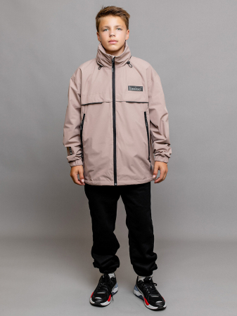 Ветровка для мальчика Гудвин в стиле спорт-шик в оттенке капуччино. Капюшон-трансформер сворачивается в воротник, а спереди накладные карманы на молнии. Курточная ткань с водоотталкивающим покрытием DWR. На рукавах манжеты на резинке.
