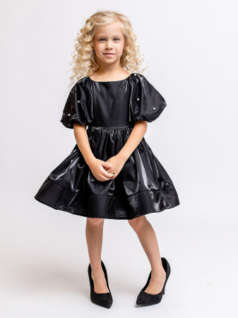 Нарядное платье из матовой органзы и кристаллона с пышной юбкой и рукавами. Черное платье для девочки от batik с объемными рукавами, украшенными бусинами. Юбка пышная, с подъюбником. Застежка на молнию на спинке и завязвка на бант. Красивое платье станет прекрасным дополнением гардероба маленькой модницы.