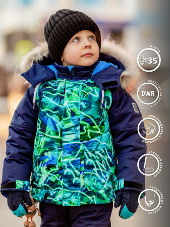 Комплект для мальчика Барт зимний утепленный из мембраны состоит из куртки и полукомбинезона. Расцветка синяя с мраморным принтом. Подкладка флисовая - мягкая на ощупь, быстро согревает и удерживает тепло, не вызывает аллергических реакций. Куртка застегивается на молнию с внешней ветрозащитной планкой. На рукавах паты на липучках, по бокам куртки карманы.
