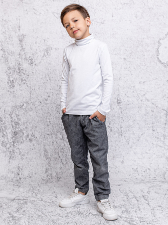 Водолазка (джемпер) для мальчика с длинными рукавами в белой расцветке из ткани супрем пенье повышенного граммажа. Важная базовая вещь в любом гардеробе: для школы и повседневной носки. Стильная, уютная, на любое время года.