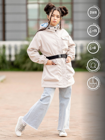 Парка-ветровка для девочки Валенсия в нежной молочной расцветке. Стильная парка без утеплителя фасона оверсайз с приспущенной линией проймы. Центральная застёжка на молнию с внешней ветрозащитной планкой. Низ рукавов на эластичной резинке. Спереди два накладных кармана с листочкой.
