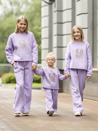 Брюки для детей Венси сиреневые широкие со стрелками от batik. Новая коллекция трикотажной одежды из футера премиального сегмента: 3-х нитки с начесом, плотностью 300 гр. Имеет в составе эко-хлопок и полиэстер в соотношении, необходимом для повышения стабильности полотна и яркости цвета. Изделия при эксплуатации не теряют форму, не вытягиваются на коленях и локтях, после стирок не скатываются.