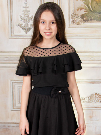 Верх выполнен из фатина в бархатистый горошек (флок).