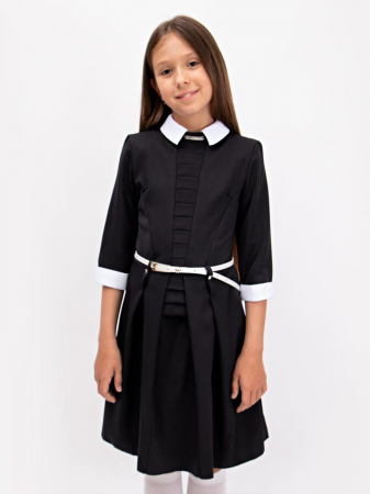 Платье Соль&Перец. Однотонное платье А-силуэта с расклешенной юбкой для самых стройных школьниц. Строгость модели придает воротничок-стойка и подплечники. Скрытая молния сзади. Боковые вытачки спереди и сзади позволяют модели идеально сесть по фигуре. Рукава 3/4 дополнены съемными белыми манжетами. Воротничок так же съемный. Есть шлевки для тонкого ремешка и сам ремешок в комплекте. Для школы или официального мероприятия - прекрасный выбор.