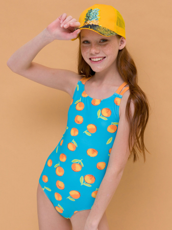 Яркий слитный купальник для девочки. Передняя часть на подкладе, не просвечивает. Оригинальное расположение лямок на спинке: прямые и перекрещивающиеся. Ткань быстро сохнет, не выгорает на солнце. Плоские и аккуратно обработанные швы не натирают кожу и не сковывают движения. Идеально вариант для плавания в бассейне и на море.