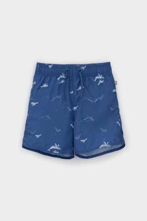 Плавки для мальчика с эластичной резинкой в поясе. Регулируются по ширине с помощью шнурка. Внутри подклад. Украшены набивным рисунком.