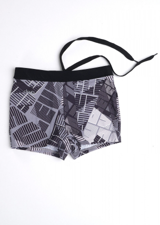 Эргономичные плавки-шорты из эластичного полиэстера. Пояс с эластичной тесьмой регулируется шнуром. Модель украшена принтом.