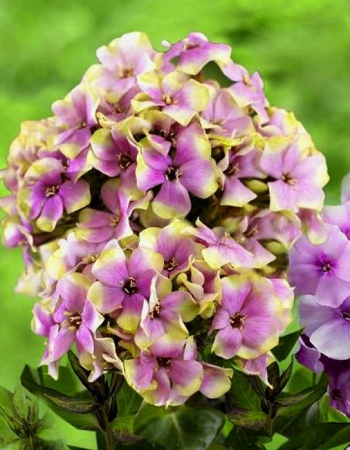 Флокс Щербет Бленд - один из наиболее популярных морозостойких многолетников высотой 80-90см. Особую декоративность ему придают плотные метельчатые соцветия светло-розовой окраски с желто-зеленой каймой. Цветки душистые диаметром 3-4см. Отличается обильным и продолжительным цветением с июля до сентября. Прекрасно смотрится в букетах, маленькими и большими группами на клумбах и рабатках.