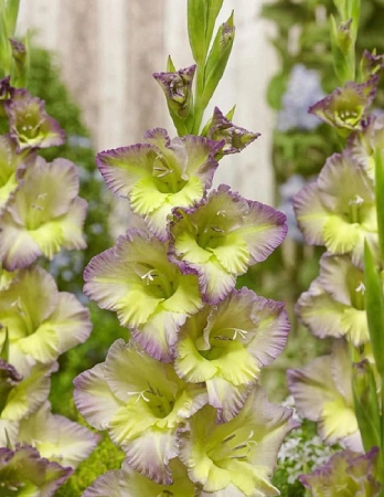 Гладиолус Мунлайт Шэдоу (в переводе с английского — «лунная тень») отличается мягкими тонами. Пастельно-жёлтый в серединке плавно переходит в молочно-сиреневый ближе к краям, украшенным тончайшей контрастной лиловой каймой. Высота растения до 140 см, диаметр цветка до 18 см. Время цветения: июль, август, сентябрь.