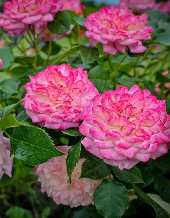 Эта яркоокрашенная флорибунда цветёт пышными соцветиями, состоящими из густомахровых и долго не увядающих цветков диаметром 4-6 см. В начале цветения цветки вишнёво-красные, затем розово-белые с оттенками абрикоса и ванили. Цветение повторное. .Куст компактный, средних размеров, достигает 50-60 см в высоту и почти столько же в ширину, с прямостоячими побегами. Листва средних размеров, насыщенно-зелёная, с глянцевым блеском.